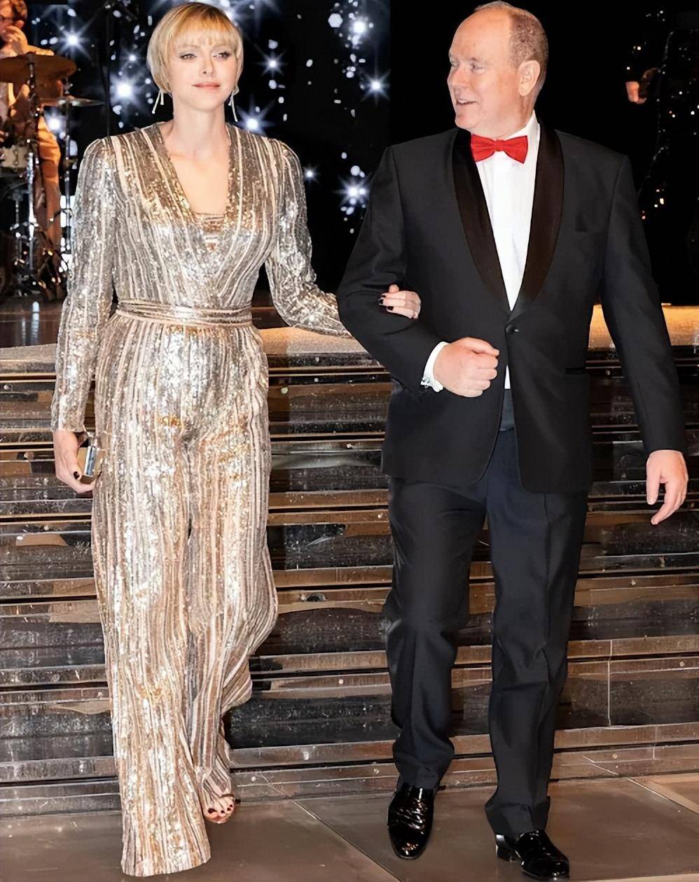阿尔贝二世亲王西装革履,大腹便便的模样俨然是发福了,与一旁的夏琳王妃比较,像极了两代人。