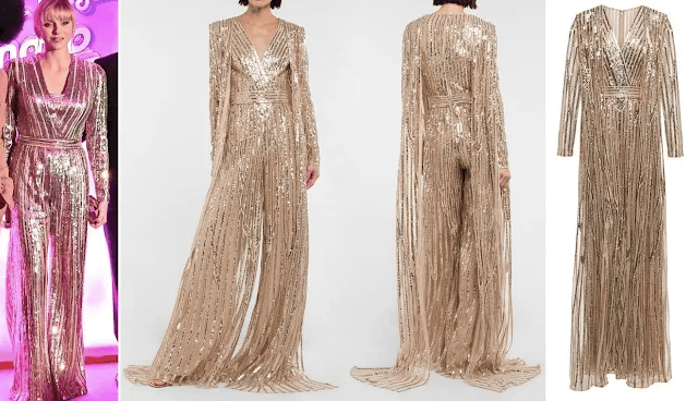 连体裤的版型很宽大,特别是肩膀部位,暴露了夏琳王妃大骨架的缺点,整个人看起来结实不少。