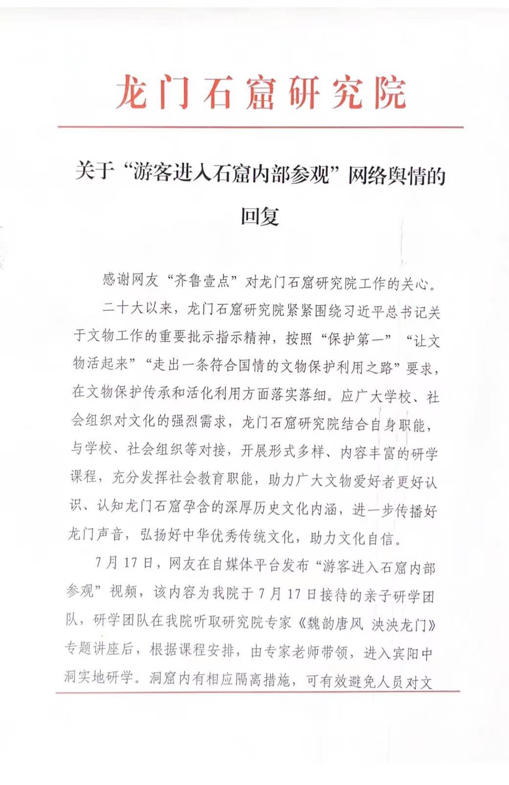 ”游事件,龙门石窟研究院通过大象新闻作出独家回应。